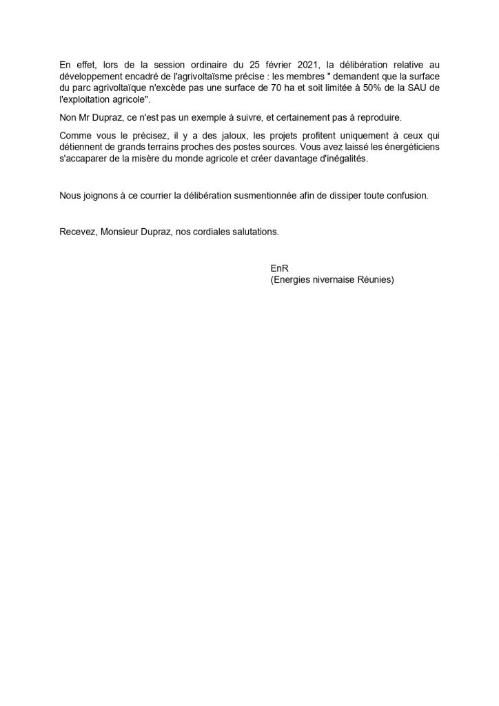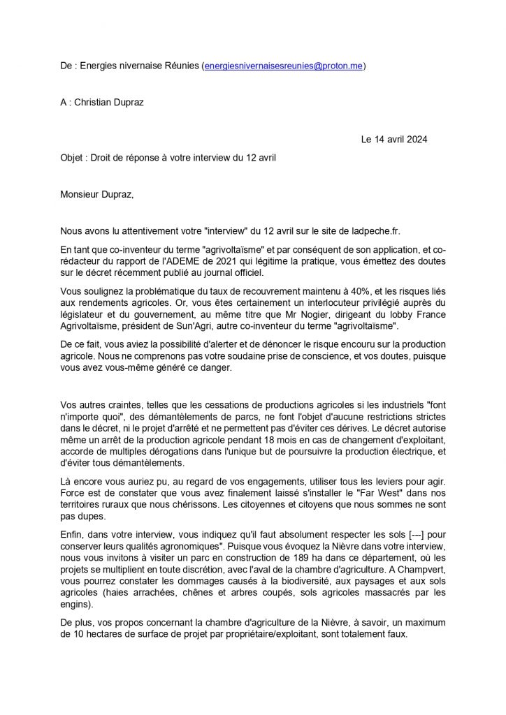 Réponse à Christian Dupraz (INRAE) suite à l'article dans La Dépêche